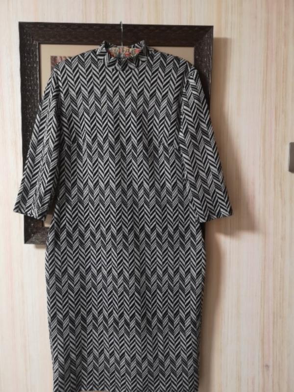 Трикотажне, в cтилі Missoni. Рукав 3/4. Вказан розмір 12, по фігурі Довжина 103 см Підпахви 45 Стегна 49 Талія 41 Рукав 43 Трикотаж плотний. Ззаду замочок-блискавка.