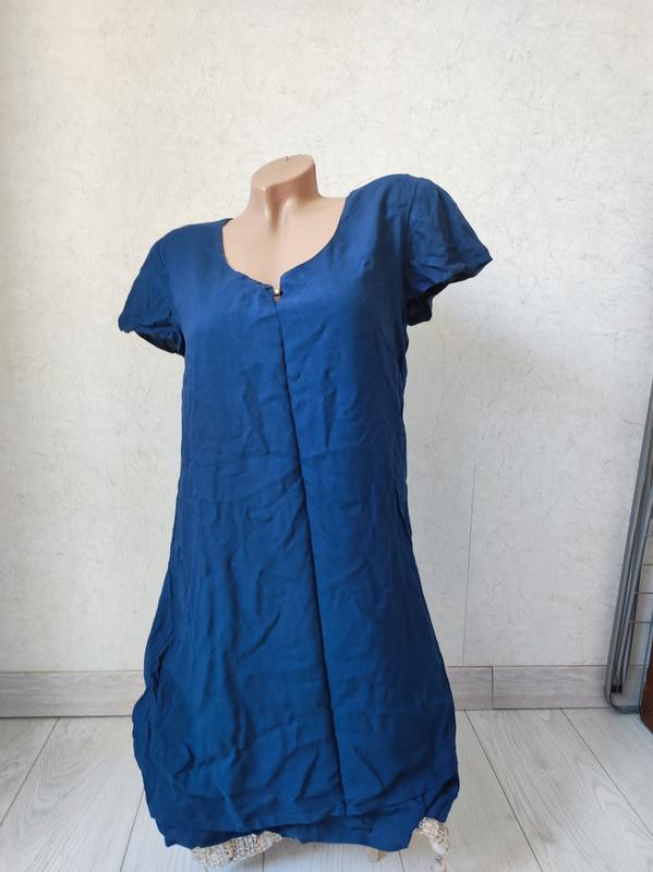 Платье 👗 синее nomads 100%вискоза Платье в два слоя ткани Ткань приятная лёгкая летящая Впереди красивая металлическая пуговица застегивается на груди Размер 10 ПОГ 46 ПОТ 50 ПОБ 55 Длина нижней части 83 Длина верхнего слоя90 Рукав 14