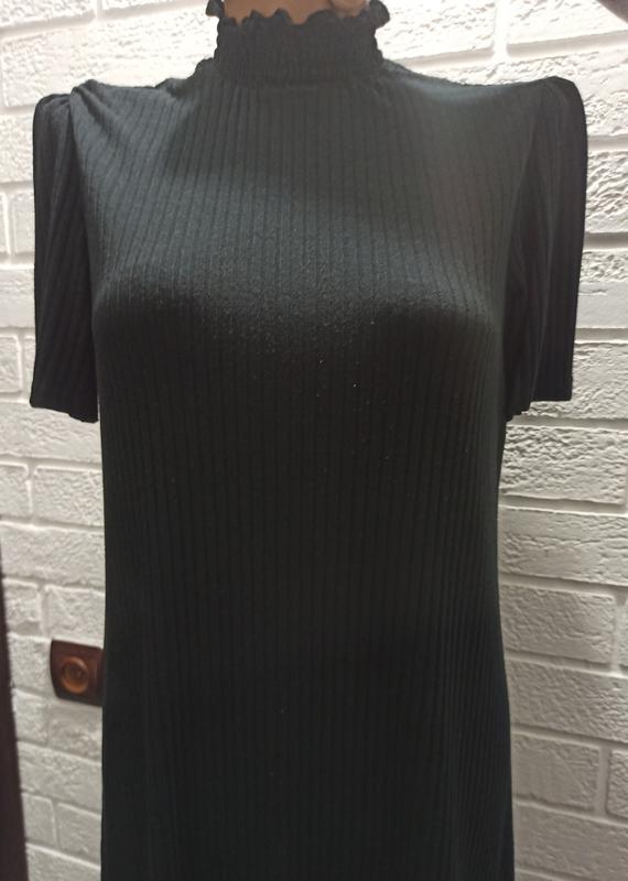 Маленько черное платье в рубчик.