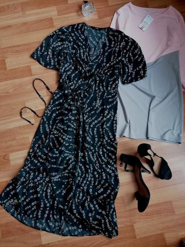 🖤чорна сукня на запах в квітковий принт 🖤платье миди в цветочный принт