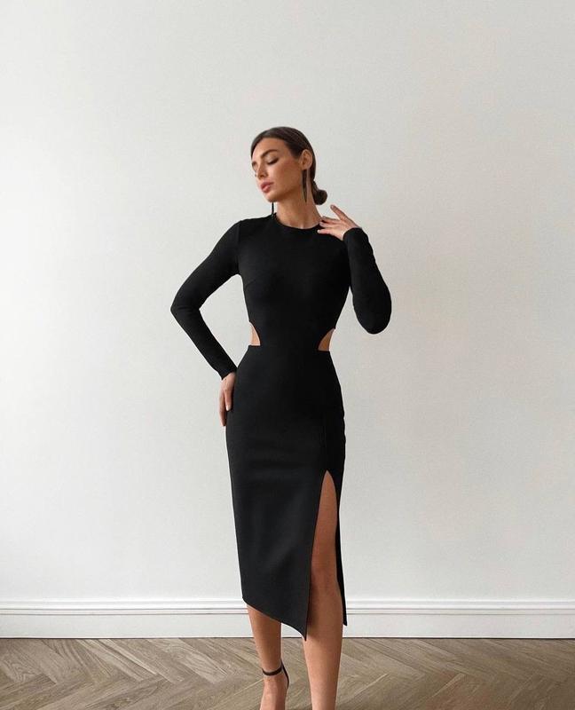 Арт 4935-9009 Сукня Розмір 42-44, 46-48 Тканина - трикотаж Алекс Колір чорний, червоний Фігурні вирізи на талії та витончений розріз вище коліна притягує погляди лише до Вас ♥️