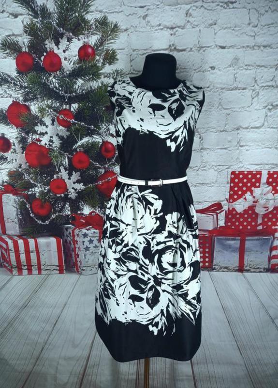 Стилтне, ефектне плаття. Стан нового, без будь яких нюансів Тканина натуральна. Плотний котончик ЗАМІРИ: Об'єм грудей 102см Об'єм талії 90см, Бедра вільного крою, Довжина 104см. Пояс не в комплекті. Брала для себе, розмір не підійшов(