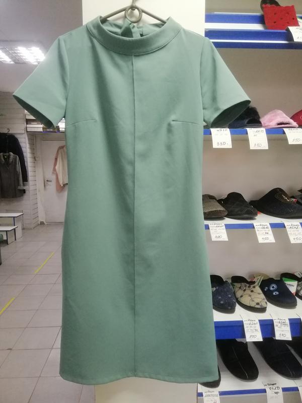 Красива оливкова сукня. Гарно лягає по фігурі. Тканина приємна на дотик. Є кишені. Заміри вказала на фото.