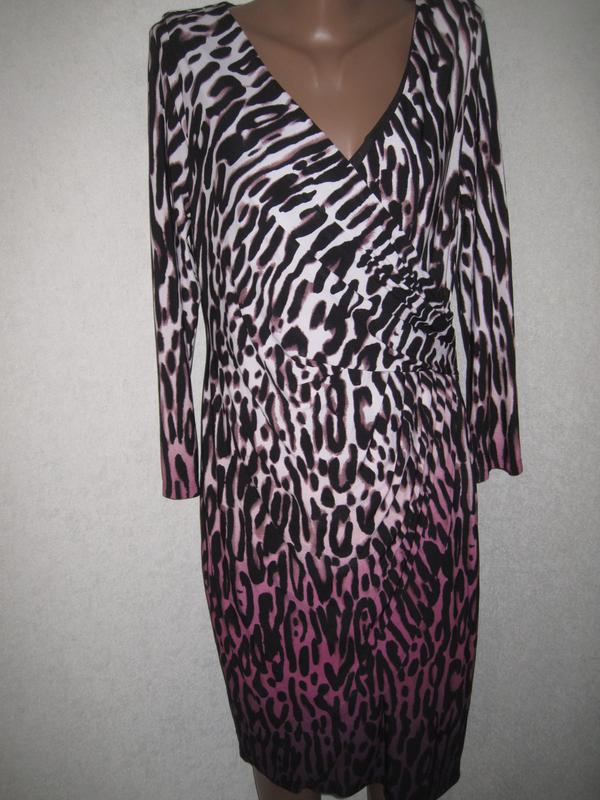 Трикотажное платье Coast р-р 14 градиент , 95%полиэстер, 5%эластан, подкладка полиэстер трикотаж. тянется хорошо, лиф на запах,ПОГ52, ПОТ44, ПОБ52, длина 105, рукав 56, отличное, 250грн