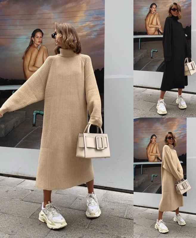 Новинка Об'ємна тепла сукня на флісі з дорогого турецького рубчика❄️ Ціна - 789 грн🏷 Мод. b 877 Розмір: 42-44, 46-48 Тканина: рубчик на флісі Колір: беж та чорний