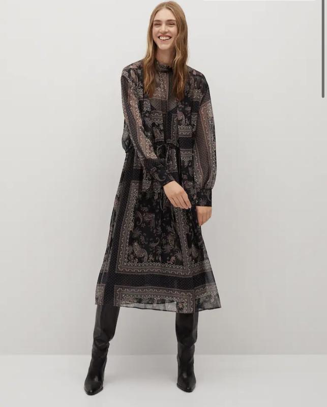 Очень легкое платье mango Красивий принт Рукава свободные Есть завязка в талии Снизу есть подклад (предварение фото) 100% полиэстер ❣️Платье полностью новое❣️ одевалось только для примерки Не подходит размер ( Размер L