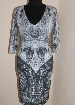 Дуже гарне плаття досить щільне, розмір 42 європейський.Складники :94%- поліестер, 6%-еластан, одягнуто на манекен 52 розміру.Довжина - 101см, рукав від плеча-47см(3/4), пог-52см,пот-44см, побіди-52см.