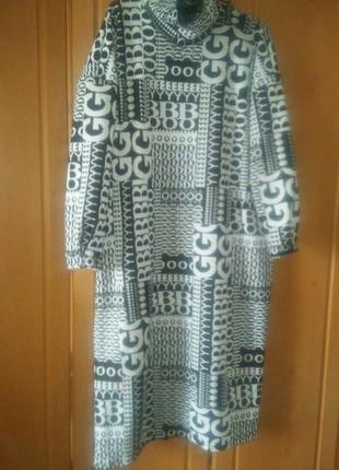 тканина тепла м"якенька фактурна формодержащая на флісі середньої щільності тягнеться по фігурі З лиця як фактурна в"язка,а виворіть гладенький сірий фліс довжина 110см рукав від горловини 72см ПОГ 70см ПОБедра 71см в спок. горловина висотою 11см і можна викладати по-різному Дууже комфортне теплюще і приємне до тіла Приховує за рахунок принта-Літери напису сірі на чорному тлі-дууже актуально