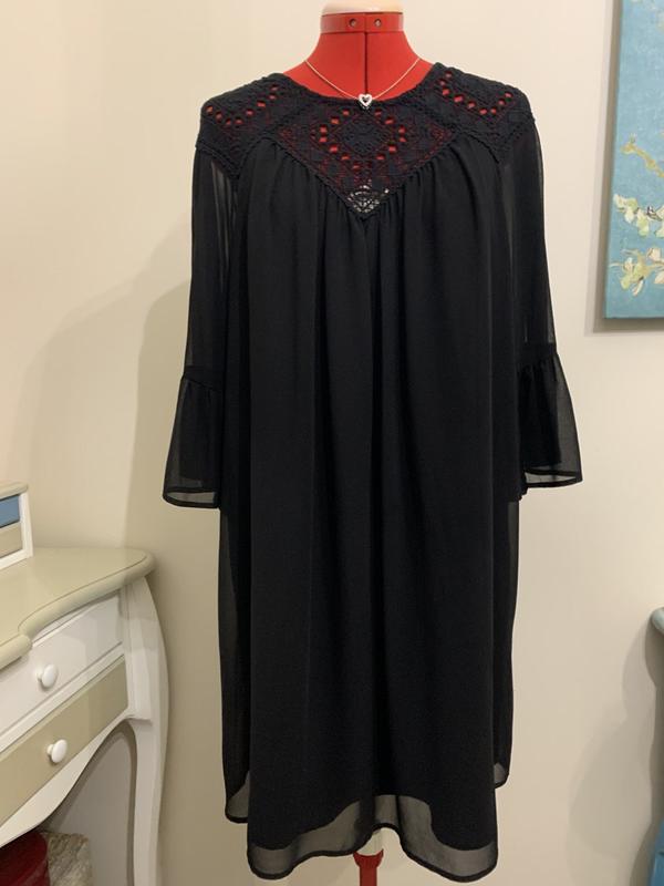 сукня MANGO, шифонове, на пiдкладцi, красиве шиття на кокетцi, рукава укороченi з рюшею, довжина виробу 85 см, довжина рукава 44 см, довжина вiд плеча до плеча 44 см, обьем грудей 110 см, обьем низу 150 см