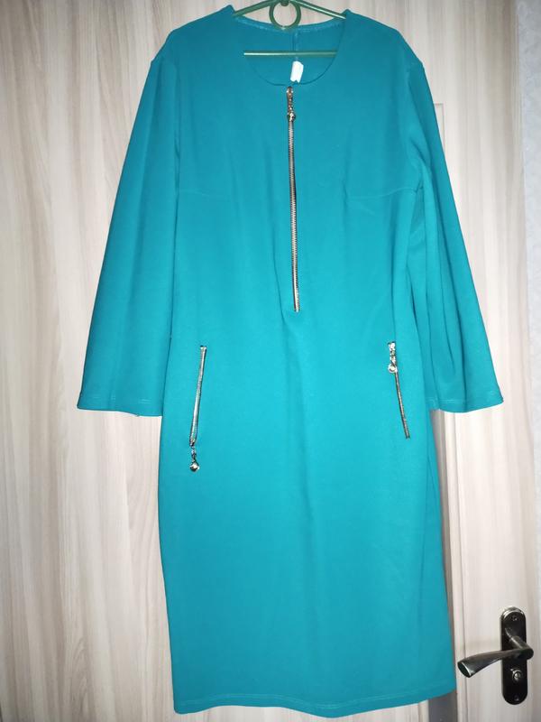 Платье красивого бирюзового цвета. Спереди замочек. Замочки на кармани обманки. 48 размер по набору. Маломерит. Идет на 46.