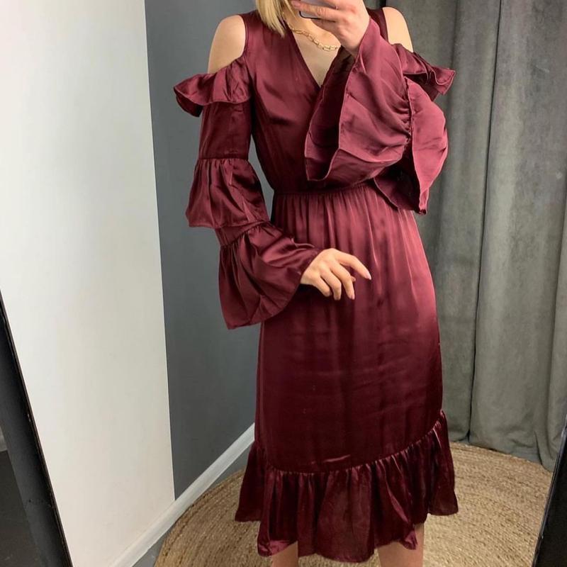 📌Меди платье винного цвета с рюшами на перчатках от Na-kd 🏷новая, с бирками Размер Хс Длина 113, пог 44, пот 29 Цена: 649 грн