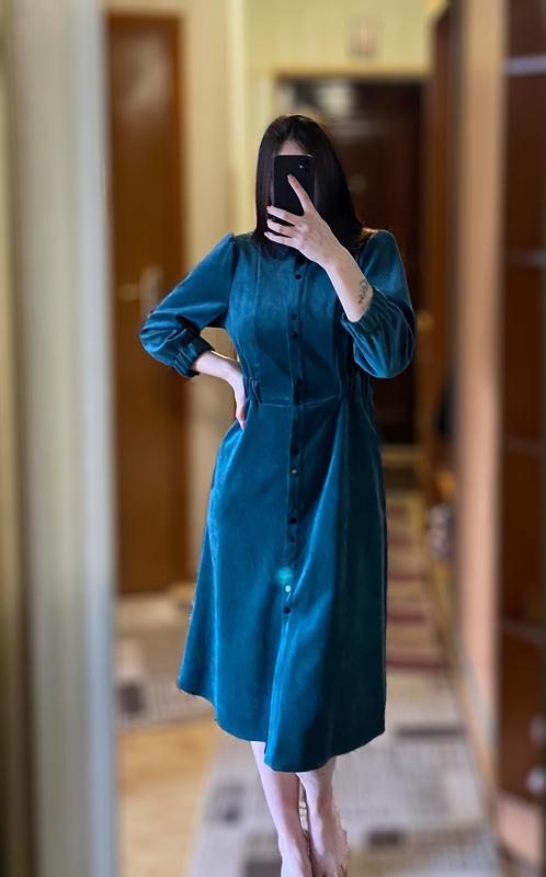 Святкова сукня Темно-зелена, колір вживу трішечки темніший Сукня прямого крою, не дуже приталена Стан ідеальний Довжина - 105см Талія - 35см Рукав - 46 см Груди - 40см