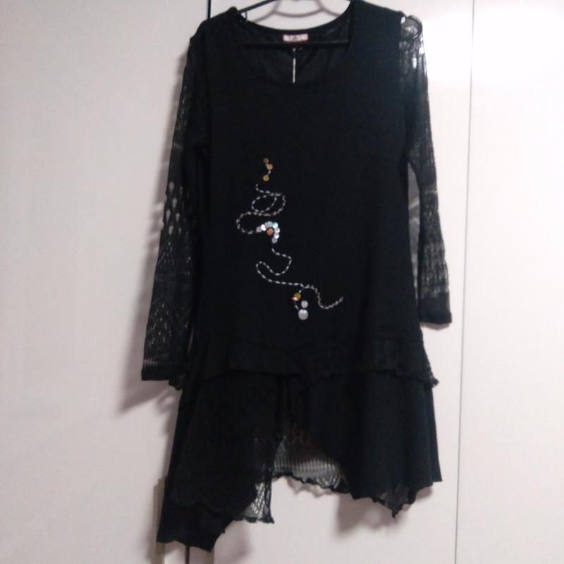 Вечернее,стильное платье на подкладке . Рукава с тонкой вязки. Низ платья с переди частично вязаный,частично с трикотажа. Сзади также есть, и вязка,и трикотаж.