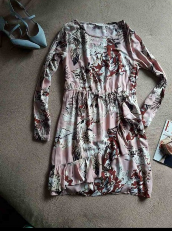 Романтичное и стильное платье L,можна на М,сзади поясок длина 91 см пог 50 см рукав 60 см плечи 39 см новое сток без бум бирки