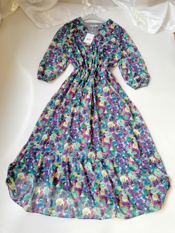 Платье длинное миди цветочный принт шифон сукня довга міді квітковий принт шифон