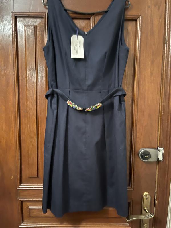 Платье на подкладке темно - синего цвета 16 / 46 размера. Португалия, бренд Villagallo. ПОГ 52 см, ПОТ 44 см, ПОС 54 см, длина до талии 38,5 см, общая длина 97 см. Новое, с ценником -153 фунта. Присутствующий запах обработки.