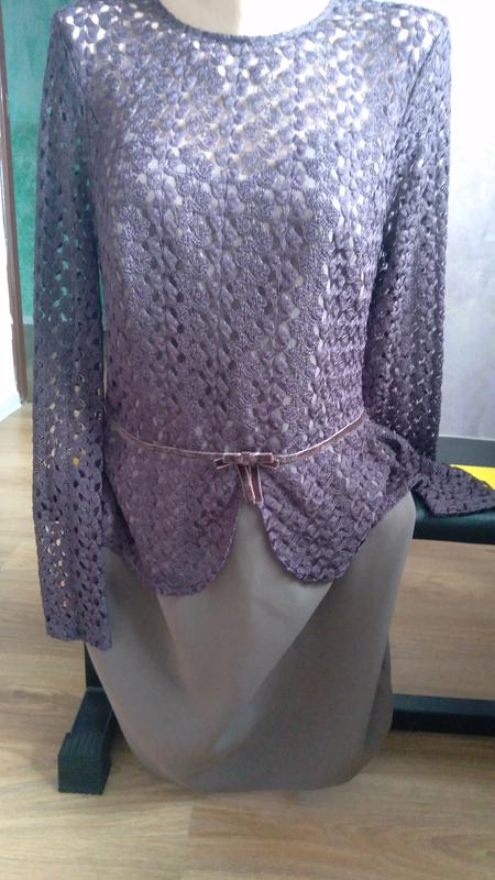 Нарядное платье кофейной цвета.модель приталенного покроя,юбка заужена.под гипюром лиф платья,как и юбка