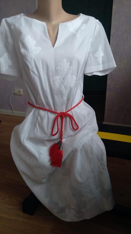 Летнее белое платье под красный пояс . Изделие полностью на хлопковой подкладке. Смотрится нарядно и в то же время сдержанно . На бирке 48размер.