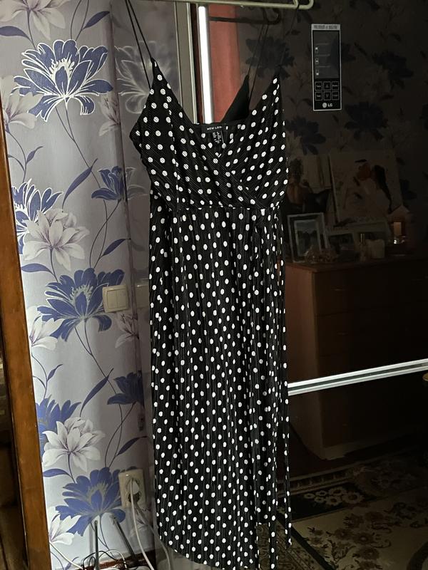 Элегантное платье в горох, подойдет на С-М Будет подчеркивать декольте,на запах Размер 8,подойдет на 10