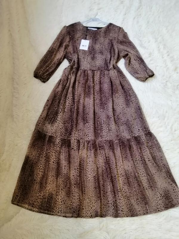 Платье шифон на подкладке принт леопард свободного кроя плечи от шва до шва 43см пышный ру...