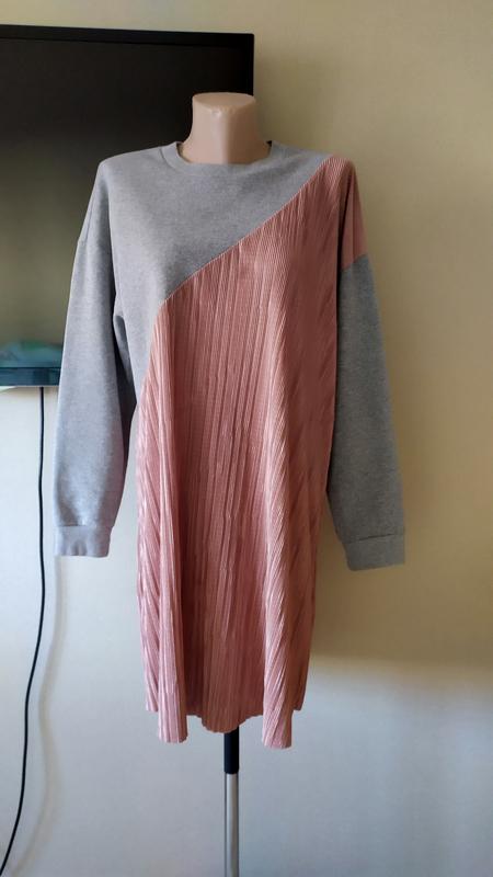 Комбинированное платье свободного кроя.Пог-60,плече-24,рукав-50,длина-87.Без катышек.