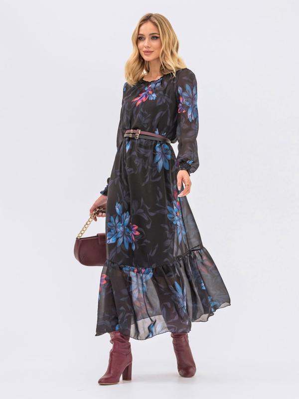 Сукня вільного крою з шифону в турецький принт доповнена широким воланом знизу