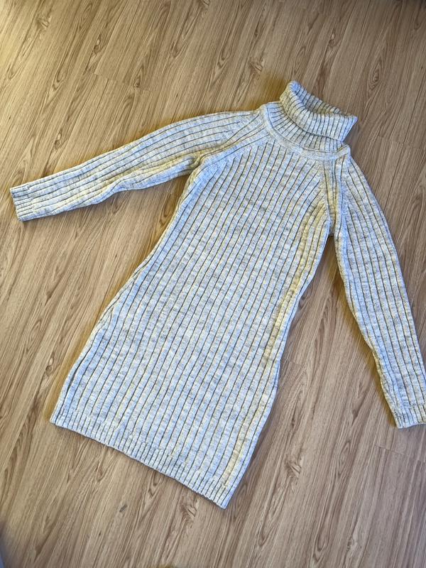 Вязаное платье ,теплое Теплое вязаное платье , свитер Серого цвета Размер М-L Дина 97,5см Длина рукава 71,5см ПОГ 49,5см ПОТ 43,5см ПОБ 48,5см Отлично тянется Замеры в спокойном состоянии
