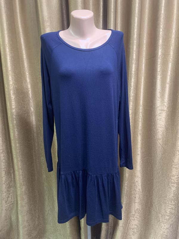 Темно-синее платье Envil с длинным рукавом, вискоза Размер xl Длина 89см Длина от горловины 73см, реглан Полуобхват груди 50-65см Полуобхват талии 50-65см Полуобхват внизу по краю 54-64см Внизу оборка, свободный крой Идеальное состояние Турция Состав 95% вискоза, 5% эластан, очень приятная на ощупь, суперкачество