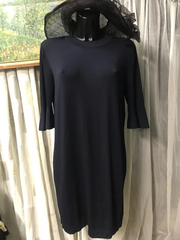Стильное трикотажное платье от COS. Цвет-темно-синий, рукав-до локтя, без подкладки и без карманов. Состав:вискоза /полиамид (65/35). Размер по бирке-М. Замеры по запросу.