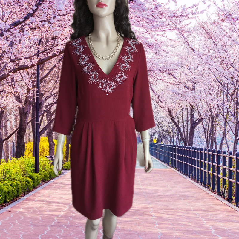 женское платье бордо ткань не тянется приятная к телу с подкладкой на 46- 48 размер.