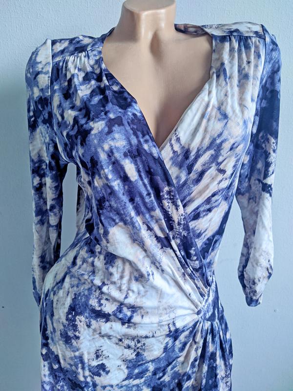 Сукня дивовижно підкреслює фігуру! Дуже жіночний силует, відрізне по талії, збоку драпірування, ззаду виточки, струменева тканина із віскози, розмір 42/44 (английський 16), стан нової речі, виміри: довжина - 106 см, плечі - 38 см, ПОГ - 50 см + (за рахунок вирізу), ПОТ - 38-40 см (без розтягувань), ПОC - 57-58 см, довжина рукава - 50 см. Підписуйтесь та дивіться інші мої товари, так Ви зможете знайти цікаві ексклюзивні речі. Буду щиро рада співпраці з Вами.🙂 ПОВЕРНЕННЯ та ОБМІНУ ТОВАРУ НЕМАЄ!