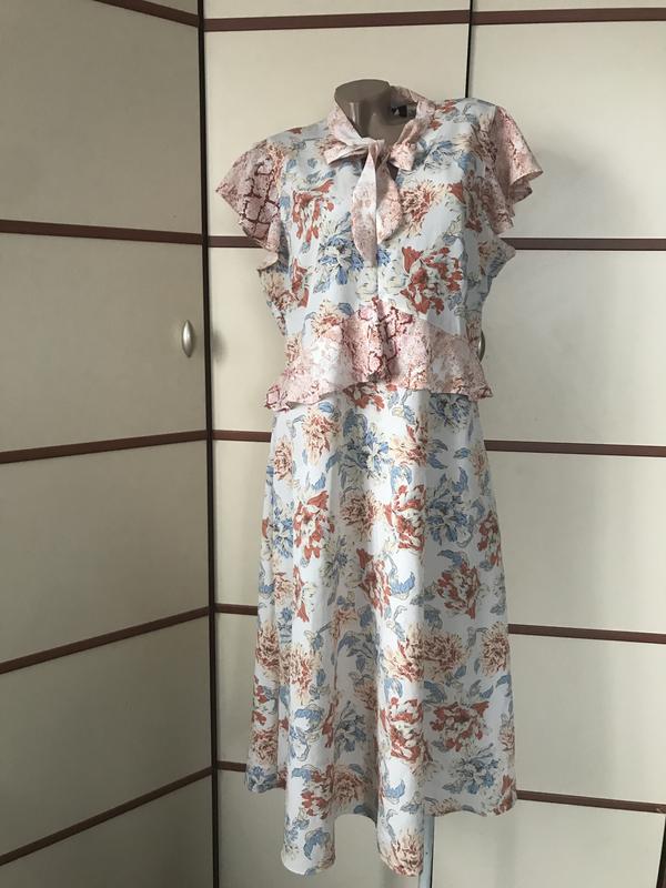 Красиве плаття міді,розмір L-XL(вказаний 16)довжина 122см,пог 54см,пот 45-48см,до низу вільне ,стан нової речі.