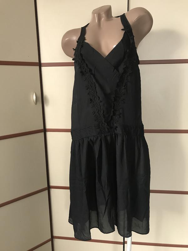 Красивое, легкое платье,размер L(бирки отсутствуют) длина 95см,пог 50см,пот 52см(талия заниженная),до низа свободное.