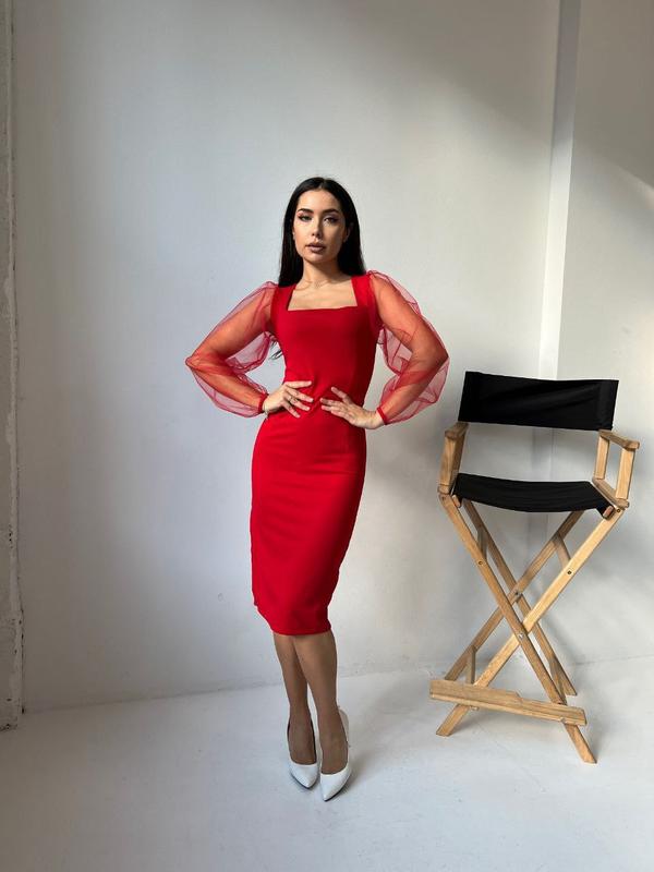 Платье Мод 286 Размер:42-44,46-48 Ткань: крепдайвинг-евросетка Цвет: черный, красный Цена:620 грн