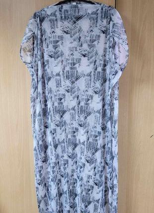 Шифоновые балахон без подкладки,воротник лодочка,плечо спущено.Ткань жатка.Ог 132,Об140+,плечо от ворота 19+,бицепс 40,длина 125.