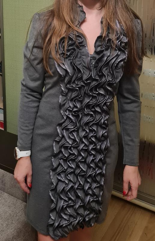 Сіре платтячко з святковими рюшами. Довжина Midi, зручне, м'яка тканина.