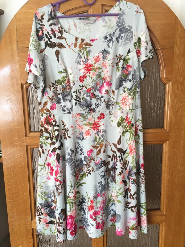 Класне,практично нове квіткове платтячко💕Дефектів немає,ідеальне👍Розмір вказаний 16,но реально 12-14,брала собі але довжина не моя,маю фото на собі 12розмір,скину при потребі👍Дивіться заміри:довжина-93см,в грудях-55см,в платті відрізна талія-45см,плечі-37см.Тканина поліестер з еластаном-падуча і тянеться,класна тканина👌👌👌Пишіть,дам відповіді,зроблю додаткові фото💕💕💕
