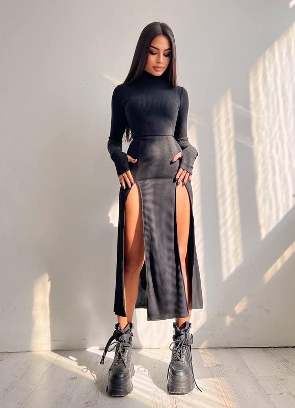 Сукня міді з розрізами ▫️ціна 860 грн ▫️тканина: трикотаж рубчик ▫️розмір: S та М
