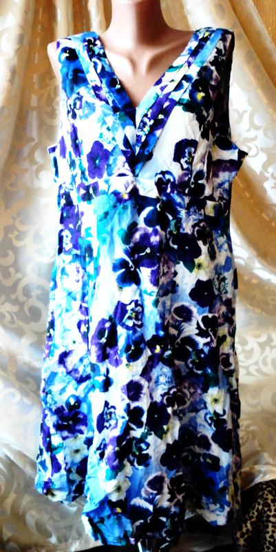 Шикарное платье per una р.14 (ог 110, т.94, дл. 100) лен цветы