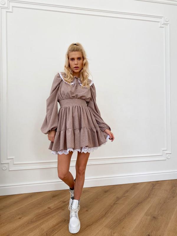 Арт 434 Сукня Juisy Няшна, мила, кокетлива, мила сукня Пишна спідниця, широкий рукав, трендовий комір, підюбник з мереживом. Сукня застібається на боці на блискавку, талія на спинці. Тканина: атлас-шовк Підкладка: шифон Розмір: one size (42-46)