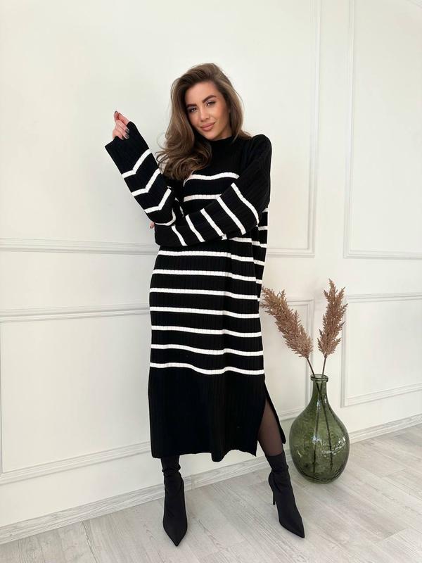 Теплое трикотажное платье в длине миди. Модель свободного кроя с объемным с длинными рукавами. Прямой крой этого платья создает минимальный комфортный образ. Выполнили из мягкого трикотажного материала. • Размер универсальный • Склад 50% бавовна, 50% акрил • Длина 120 см • Ширина 116+ см • Цвет: кофейный, черный, белый kod: 224564