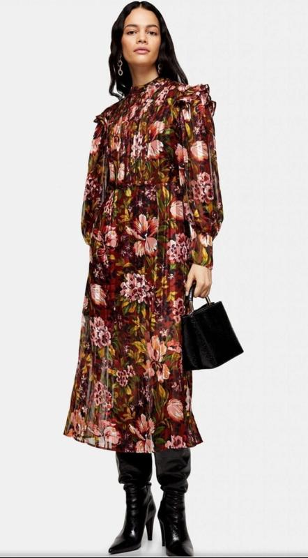 Невероятно красивое нежное нарядное платье в цветочный принт. Пышные рукава, снизу слевой стороны разрез есть подюпник. Плечи-43см ПОГ-47см ПОТ-40СМ ПОБ-52СМ Длина рукава до манжета-53см Длина платья-125см
