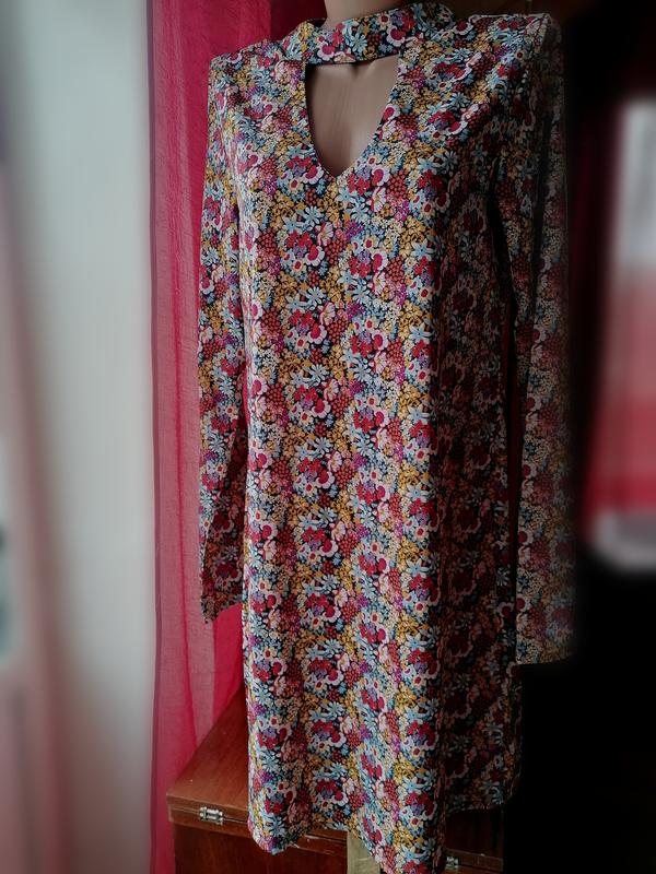 🌺платье в цветочный принт с чокером от boohoo 🌺сукня прямого крою в стилі ретро