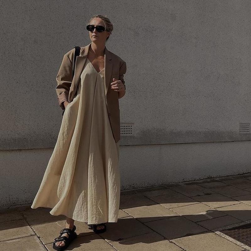 ОБЪЕМНОЕ МАКСИ ПЛАТЬЕ А силуэт Это летящее макси-платье А-силуэта, изготовленное из более экологичной смеси вискозы ECOVERO™, свободно ниспадает на тело. Имеет глубокий V-образный вырез, узкие бретели и вырез на спине. - Свободные складки - ECOVERO™ является торговой маркой Lenzing AG. Вискозные волокна получают из сертифицированных возобновляемых источников древесины с использованием процесса с меньшим воздействием на окружающую среду. 64 % Вискоза ECOVERO™, 36 % Полиамид (нейлон) / Машинная стирка в холодной воде Размер 42 44