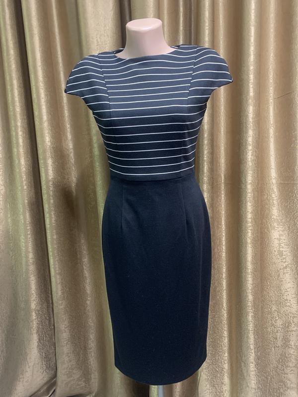 Платье F&F в деловом стиле черного цвета размер 6/ xs Цвет чёрный с белыми полосками вверху Застёжка змейка на спине Разрез сзади На подкладочной ткане Вьетнам Длина 101см Полуобхват груди 43-48см Полуобхват талии 33-36см Полуобхват бёдер 49см по подкладке Низ 41см Состав 83% полиэстер, 15% вискоза, 2%эластан