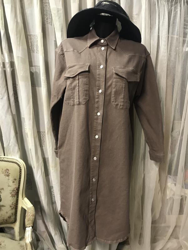 Стильное платье-рубашка из плотного денима. Идеальнейшее состояние. Красивый цвет, застежка на металлические пуговицы, два кармана в боковых швах, два кармана на груди. Низ оформлен как мужская рубашка. Денис плотный, качественный. Размер по бирке-34. Замеры : длина-102 см, ПОГ-52 см, ПОБ-53 см, рукав от ворота-72 см.Очень стильное!