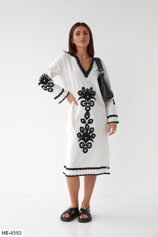 Сукня HE-4592 HE-4592 S, M, L Жіноче плаття з вишивкою Матеріал: 80 бавовна, 20 поліестер Виробник: Туреччина Довжина виробу s - 111 см, m-112 см, l - 113см Ширина під проймами рукавів (над грудьми) s-50 см, m-51 см, l - 52 см Довжина рукава від горловини s - 66 см, m - 67 см, l - 68 см