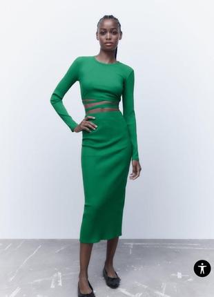 Спідниця з еластичним поясом і високою посадкою. Розріз ззаду внизу. Укорочений топ із круглим коміром і довгими рукавами. Зав’язки внизу. Склад: 90% БАВОВНА · 10% ЕЛАСТАН Розмір S. В наявності різні кольори, зелений, чорний та блакитний. Тканина добре тягнеться. Заміри: спідниця: Пот - 28 см поб - 37 см довжина - 85 см розріз - 38 см топ: В плечах півобхват - 32 см рукав - 60 см пог 33 см довжина 35 см + зав’язки Made in Bangladesh