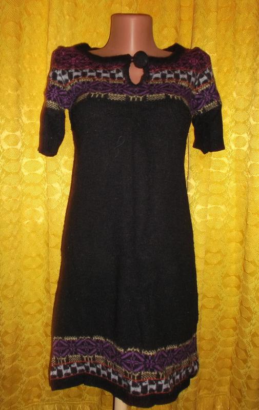 Платье черное узор шерсть с вискозой р. xs - s - ichi