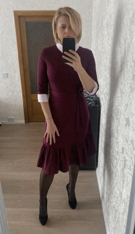 Чарівна сукня кольору Бордо розмір ( або ж червоного вина), розмір - s, підійде і на розмір М. Довжина сукні - 102 см, талія - 36 см, плечі - 39 см, довжина рукава - 36 см. На шиї та рукавах є коміри більш біло - рожевого кольору. Тканина - віскоза, поліестер, не дуже плотна, бажано брати щоб було вільно. Застібка збоку. В комплекті - пояс. Мій зріст ( на фото) - 174 см.